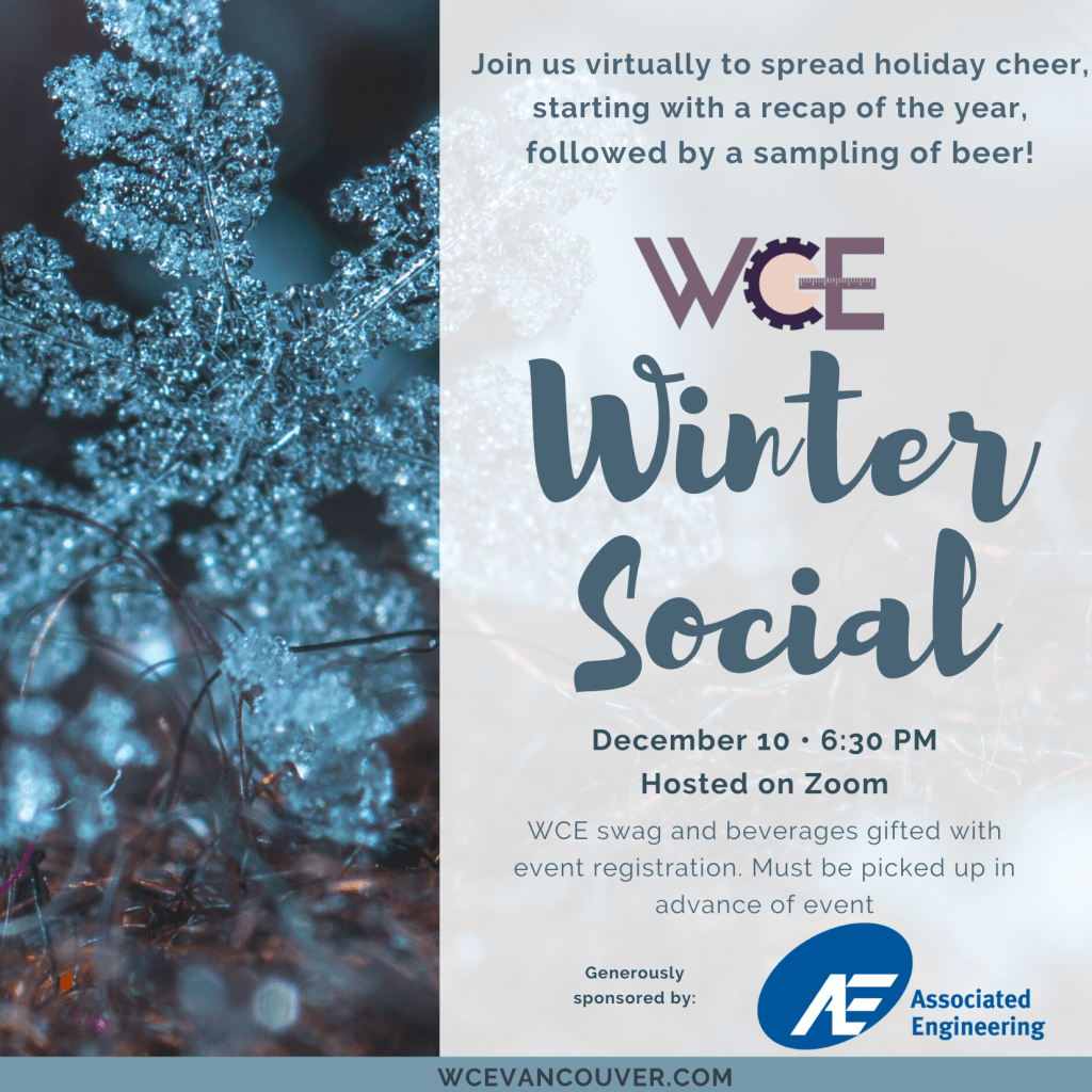 Join us on December 10th to spread virtual cheer at WCE’s third annual Winter Social sponsored by Associated Engineering!
